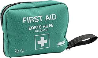 Grundausstattung: Digitales Thermometer, kleine Schere mit abgerundeten Spitzen, Pinzette, Einweghandschuhe, sterile Kompressen, selbsthaftende Bandagen.